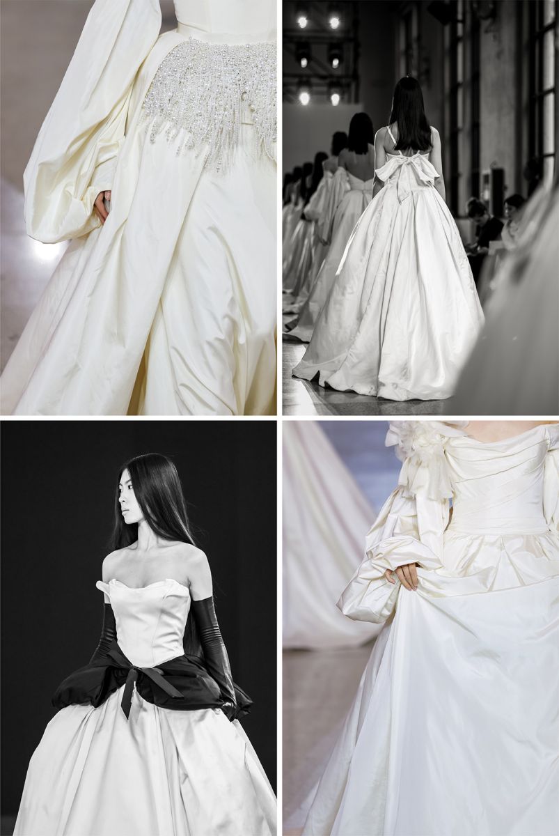 该系列尤其注重礼服背部与侧面的结构体积感、面料层次与装饰艺术,实现了全方位皆可品味的立体造型。整体风格极致放大女性气质,于性感中流露绰约风姿,诠释当代新娘的迷人魅力。