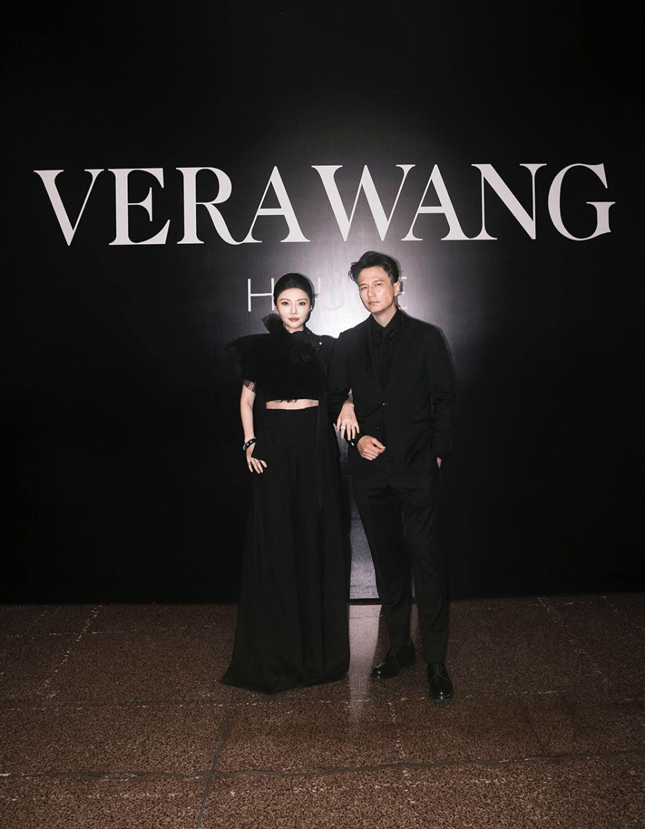 徐冬冬同样身穿 VERA WANG HAUTE 礼服与未婚夫尹子维亮相活动现场,共赏新品婚纱低调优雅的摩登魅力。